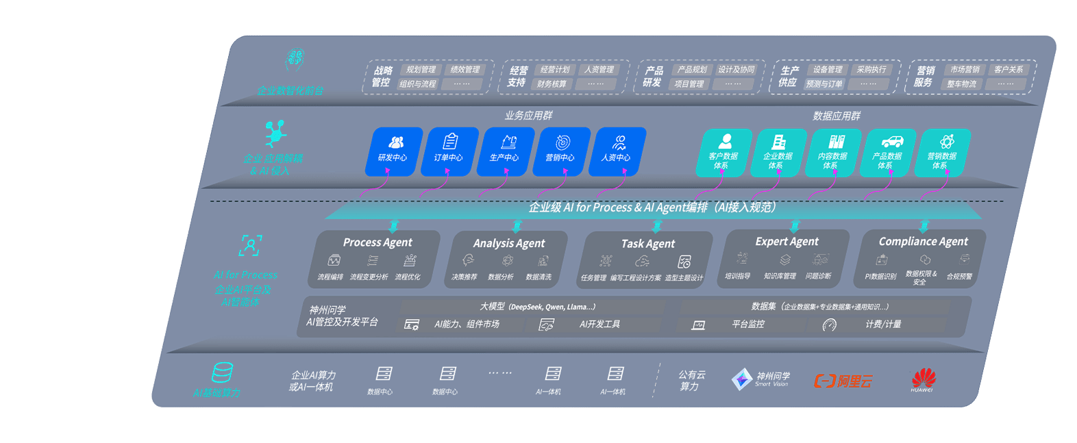 端到端的一站式AI工作空间深度融合了从企业战略规划到日常经营的全流程业务板块,,定向解决车企内部领域多、、部门多、、、链条长、、、、场景碎片化等难题,,,,支持车企快速构建以AI为核心的生产力写作体系,,,实现任务执行与AI能力的无缝集成与交互